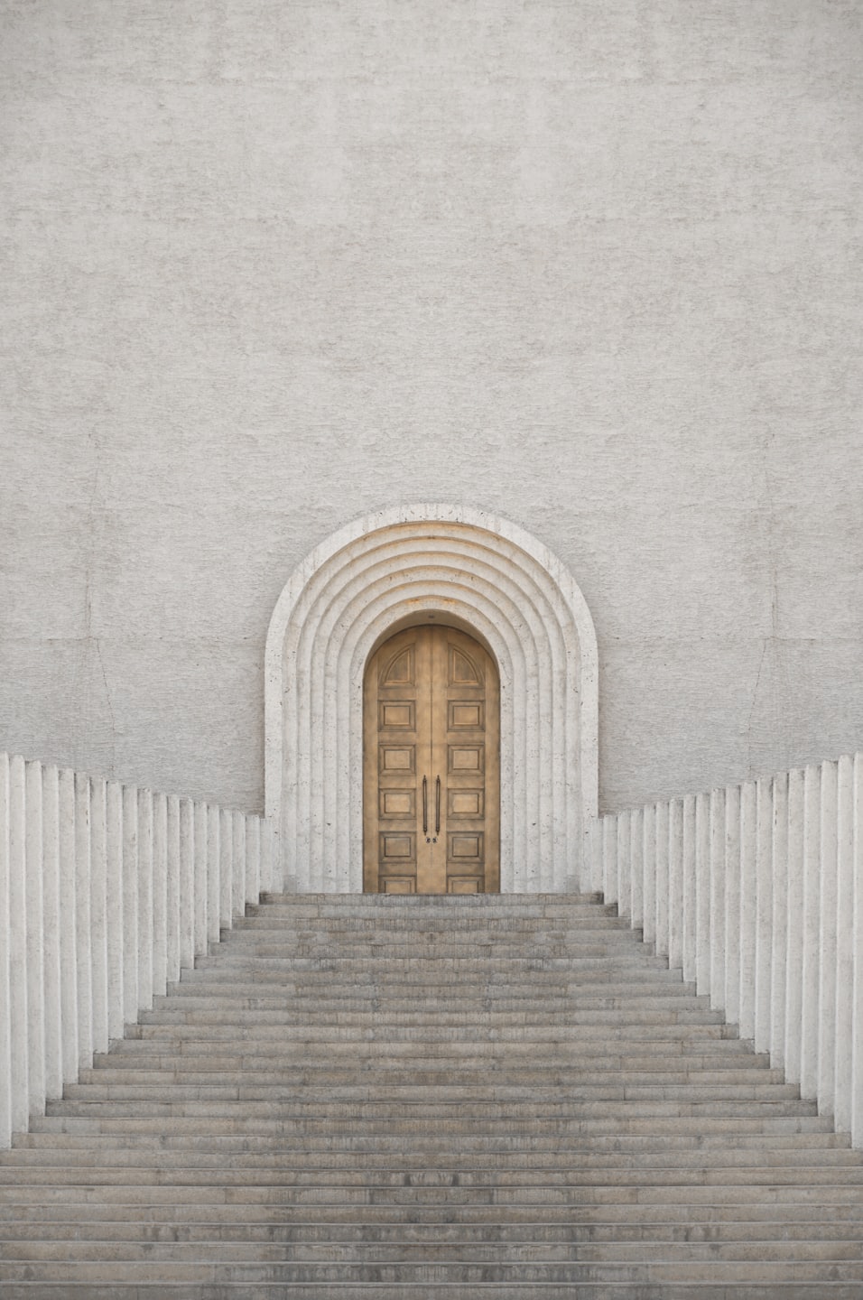 Här visas en utvald bild av en dörr som väljs från användarens bildgalleri för att skapa en visuell introduktion.